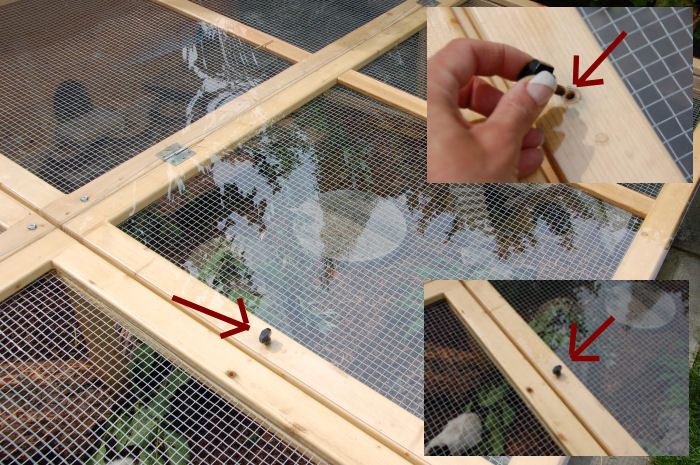 | Meeri-Haltung Mai 2012: unser neues grosses Gehege ist da! ![]() Das Gehege hat eine Fläche von 6 1/2 m2! Zusammen mit dem Schlafhaus und dem «Feriencottage» haben unsere 7 Buben nun fast 9 m2 zur Verfügung :-)! ![]() Die Hälfte des Geheges ist fix mit Plexiglasplatten bedeckt. ![]() Der vordere Teil wird nur bei schlechtem Wetter ebenfalls mit Plexiglasplatten gedeckt ![]() Mit diesen Flügelschrauben können die Platten ganz einfach und schnell entfernt werden. ![]() Die Gehegedeckel lassen sich aufklappen und bei Bedarf (z.B. zum Misten) ganz hochstellen! ![]() Damit die hochgeklappten Deckel auch halten, werden sie mit Haken befestigt! Das Handling ist jetzt viel praktischer als beim alten Gehege :-)! ![]() Schattierung im Sommer - wenn nötig wird auch der nicht mit Plexiglas gedeckte Teil sowie das Schlafhaus schattiert! ![]() Und so sieht's im Inneren des Geheges aus: ![]() Ein abwechslungsreicher Abenteuerspielplatz und viel Platz zum Rennen, Fressen und Spielen :-)! ![]() Genügend Platz ist für alle Meeris wichtig und für Kastratengruppen ein unabdingbares MUSS! Es ist so toll zu sehen, wie viel Spass und Lebensfreude die Meerschweinchen haben - so funktionieren auch Kastragengruppen ganz prima :-)! ![]() ![]() ![]() Meerihaltung 2011! ![]() Sommerlich gestaltetes Gehege (4 m2) - Schlafhaus mit mehreren Etagen (knapp 2 m2). ![]() Nach dem Foto-Shooting wird das Gehege natürlich wieder mit Casanet-Gitter-Deckeln sicher gegen Eindringlinge verschlossen! Selbstverständlich darf auch der Sonnenschutz nicht fehlen! ![]() ![]() ![]() 6. März 2011 Es ist da!!!! ENDLICH :-))))))! Unser neues, grosses Meerihaus - ein Traum! ![]() Das neue Haus ist mehr als doppelt so gross, wie das Alte! Es hat die Masse von ca. 150 cm x 66 cm x 110 cm (L,B,H). Mit den verschiedenen Etagen hat das Haus eine Nutzfläche von knapp 2 m2. Das Haus ist aus ca. 2,5 cm dickem Massivholz gefertigt, was zusammen mit den Häuschen im Winter eine super Isolierung gibt. Es ist ausserdem mit farbloser Holzschutzlasur gestrichen, damit es dem Wetter standhält - auch wenn es auf den ersten Blick «roh» erscheint! Wunderschön! ![]() Natürlich darf auch die passende Hausbeschriftung nicht fehlen - man muss schliesslich wissen, wer hier wohnt :-)))))! Das Schild habe ich selber entworfen und es dann von einer Schilderfabrik in Zürich anfertigen lassen! ![]() Das Haus hat auf jeder Seite eine Türe zum Oeffnen, was die Reinigung sehr einfach macht. Die Türen haben kleine Fenster, die mit Plexiglasscheiben verschlossen werden können wenn es kalt ist. So und nun aber zu dem, was am meisten interessiert - das Innenleben :-)) ![]() Das Haus hat unten eine durchgehende Ebene, mit einer Trennwand und zwei Durchgängen, damit sich die Buben gut ausweichen können. In jeder Haushälfte hat es eine herausnehmbare Kunststoffwanne! Von dieser Seite aus, führt die Rampe auf die erste Etage. Damit die Rampe nicht so steil wurde, haben wir für die Meeris eine kleine Holztreppe darunter gebaut! Die Etagenböden können bei Bedarf zur Reinigung ganz einfach herausgehoben werden - sie sind abwaschbar! NEU: Inzwischen hat's auch wieder eine Heuraufe gegeben und die Rampe wurde mit selbstklebenden Antirutsch-Streifen rutschfest gemacht... nun fällt den Buben das Rauf- und Runterdüsen einfacher! ![]() NEU: Im Dachgeschoss haben die Buben nun auch noch einen Kuschelsack bekommen! ![]() Das ist nun also die andere Seite. Auf jeder Haushälfte gibt es einen Ein-/Ausgang vom/ins Gehege, so dass die Buben jederzeit ungehindert rein und raus gehen können - egal ob da einer im Weg steht :-) - wobei das bisher nie ein Problem war. Von der ersten Etage führt dann eine flache Rampe hinauf ins «Dachgeschoss», welches mit einem tollen Eckhäuschen mit 3 Ein-/Ausgängen ausgestattet ist (siehe vorheriges Bild). Die anderen Häuschen haben alle 2 Ein-/Ausgänge - ein MUSS bei Kastratengruppen. NEU: Auch hier gab es im Obergeschoss noch eine neue Kuschelrolle! Ich bin einfach nur begeistert von dem Haus - gerne empfehle ich den Hersteller auf Anfrage weiter. Ich habe noch nie jemanden erlebt, der mit so einer Freude und Leidenschaft auf sämtliche Kundenwünsche eingeht - und erst noch absolut perfekte Massarbeit herstellt :-))! Das Haus habe ich gemeinsam mit Ursula Binda geplant und man hat unsere Wünsche super umgesetzt! Hobby-Holzbau in Perfektion - Wow! Weil das neue Haus 2 Eingänge hat, wurden auch die Eingangsbereiche im Gehege neu gestaltet: ![]() Mit Holzabschnitten kann man lustige Treppen bauen.. den Meeris scheint's zu gefallen! ![]() Aussichts-Terrasse mit «Deko» vor dem Eingang - Robby gefällt's... und Silas quetscht sich mal kurz darunter :-)) (Idee von Ursula Binda - Danke für die Inspiration :-)! ![]() Robby und Silas auf der Terrasse :-)! ![]() Alle 3 Buben auf der neuen Terrasse! A ![]() Die zwei Ein-/Ausgänge werden gerne benutzt :-)! ![]() Silas auf dem Sprung! Unser Gehege ist immer noch ähnlich eingerichtet wie zu Beginn unserer Meerihaltung. Nur kleinere Aenderungen und Neuerungen gab es in den letzten Monaten... ...Vieles davon ist in der Meeri-Fotogalerie oder im Meeritagebuch 2010 und 2011 dokumentiert. Januar 2011 Auf der Homepage des Bundesamtes für Veterinärwesen (BVET) gibt es Fotos von unserer Meerschweinchen-Haltung als positives Beispiel für die artgerechte Haltung von Meerschweinchen. Wir freuen uns sehr darüber! http://www.bvet.admin.ch/tsp/02260/02263/02266/03639/index.html?lang=de Eine möglichst artgerechte Tierhaltung liegt mir sehr am Herzen. Zumindest versuche ich, meinen Meeris ein abwechslungsreiches, schönes Leben zu bieten und ihnen auch die für ein glückliches Leben notwendige Bewegungsfreiheit zu geben. Es ist eine wahre Freude, den Meerschweinchen zuzusehen, wie sie ausgelassen durch das Gehege sausen, miteinander spielen und "popcornen" :-)! Das war unser Beginn in der Meerihaltung ab Juli 2010: Für meine Meerschweinchen habe ich den Garten umgestaltet, geplant, ü