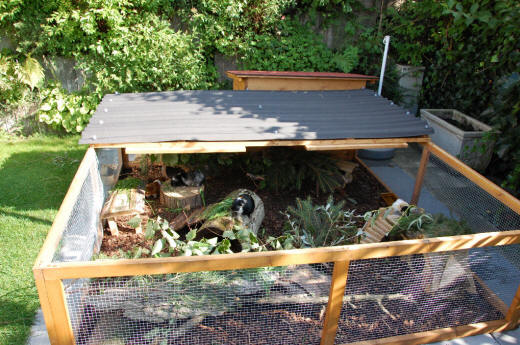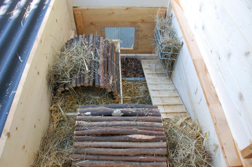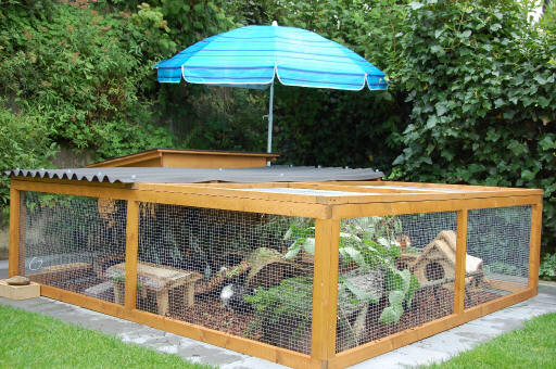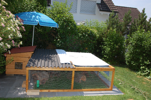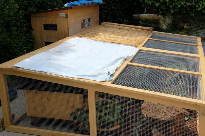 Gehege und Schlafhaus vor der Sonne geschützt! |