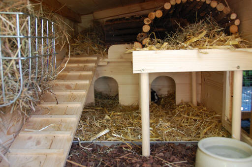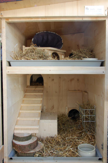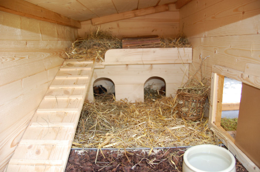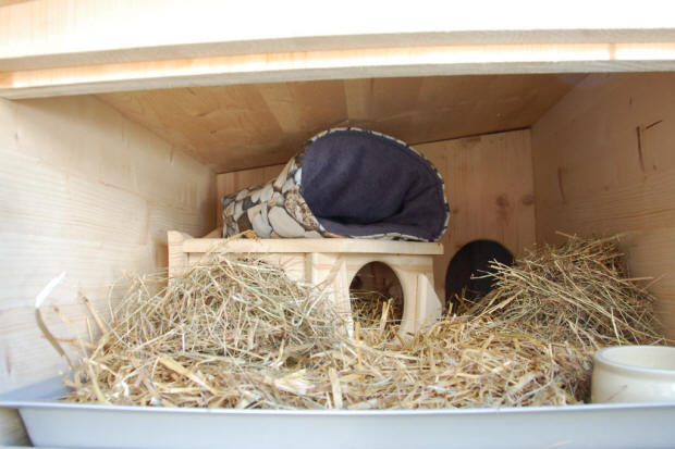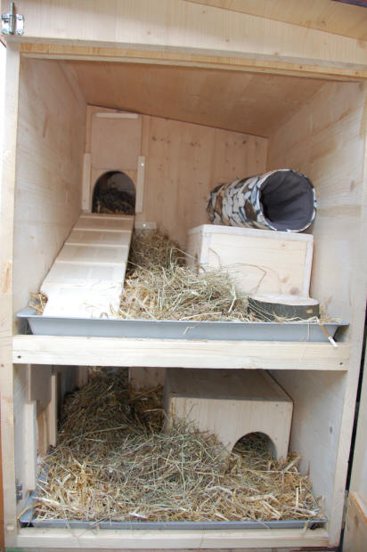 Leckereien. Das animiert sie zum Entdecken des Geheges und zum Klettern! Das tolle Wichtelhäuschen und den Heuraufen-Wagen gibt's bei: www.meerschweinchen-shop.ch Auf Anfrage gebe ich gerne auch den Hersteller unseres Geheges und des Schlafhauses bekannt. Leider hat er keine Homepage! |