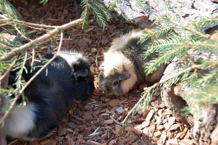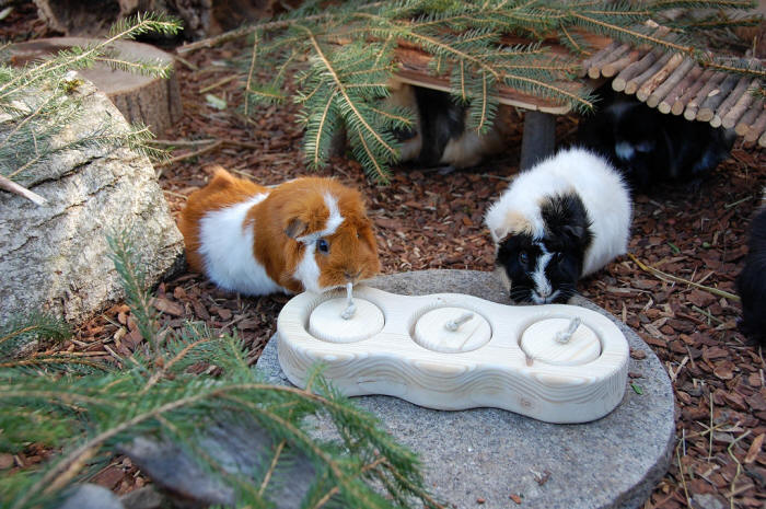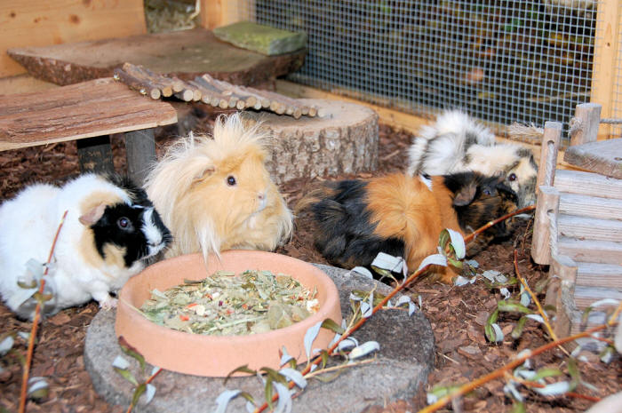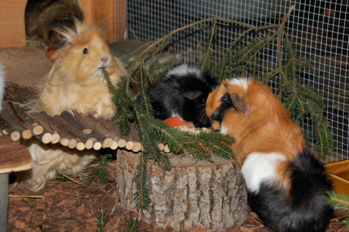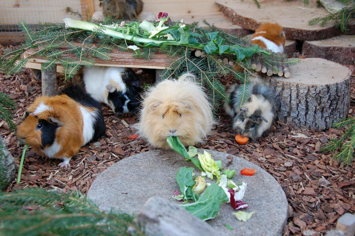 23. Februar 2012 Endlich scheint die Sonne wieder mehr und länger ins Gehege. Klar geniessen auch unsere Meeris die wärmenden Sonnenstrahlen! ![]() Silas, Toffy und klein Zäferli ![]() Silas und Zäferli! ![]() Und endlich gab's auch wieder mal eine Grasmahlzeit... mmh :-) ![]() Filou und Momo - sind die zwei nicht süss? |