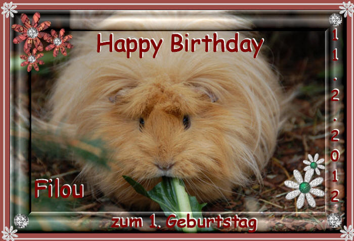 14. Juli 2012 Happy Birthday, lieber Momo! Heute feiert unser süsser Momo seinen 1. Geburtstag! ![]() Unser Momo ist ein ganz liebenswertes Meeri - eher scheu und zurückhaltend, überhaupt nicht dominant und extrem umgänglich mit seinen Kumpels. Es ist so schön, ihn im Rudel zu haben :-)! |