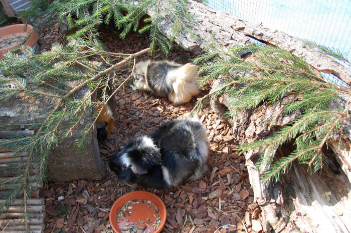 21. Februar 2012 Unseren Meeri-Buben geht es sehr gut. Sie geniessen, die nun wieder etwas wärmeren Temperaturen und verbringen wieder mehr Zeit im Freigehege, suchen Futter und knabbern Tannenäste. ![]() Mmmh... leckeres Grünzeug! ![]() Zäferli - gut getarnt beim Karotten futtern :-) ![]() Toffy - auch im hohlen Baumstamm findet man meistens etwas Feines.... Weitere aktuelle Fotos gibt's in der Meeri-Galerie! |